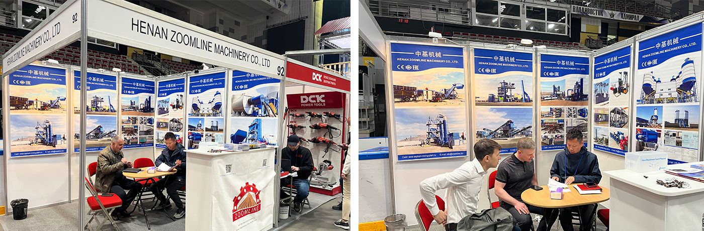 Будучи ведущим производителем строительного оборудования в Китае,наша компания представила на выставке полный ассортимент асфальтосмесительных установок,угольных горелок и бетонных заводов. Наша серия асфальтных заводов включает стационарный и мобильный и непрерывный,а также вспомогательное оборудование для дорожного строительства,такое как оборудование для производства эмульгированного битума и модифицированного битума.
