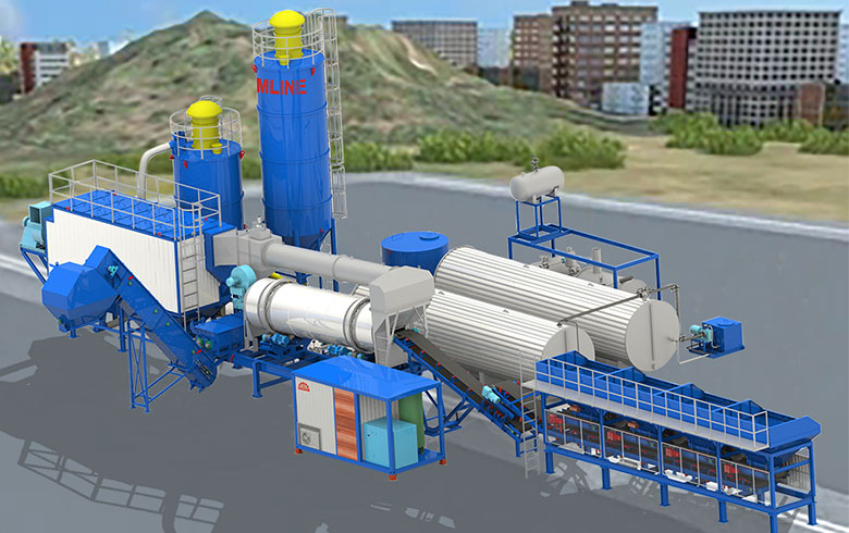 – Непрерывный смеситель с высокой производительностью для обеспечения качества асфальтовой смеси.