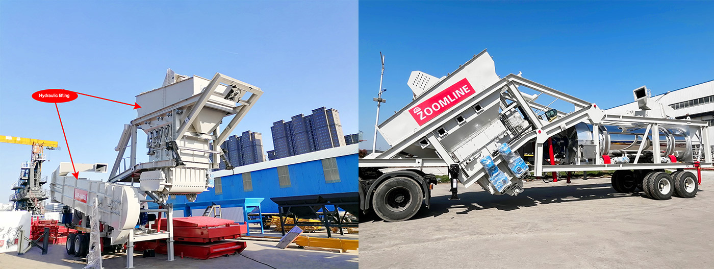 Оснащенный гидравлической подъемной системой как для подъемной,так и для смесительной башни, ZAP-M60E может достигать регулировки высоты за короткий период.Такая конструкция не только повышает эффективность транспортировки,существенно экономя время и средства,но и обеспечивает устойчивость и безопасность на различных высотах.