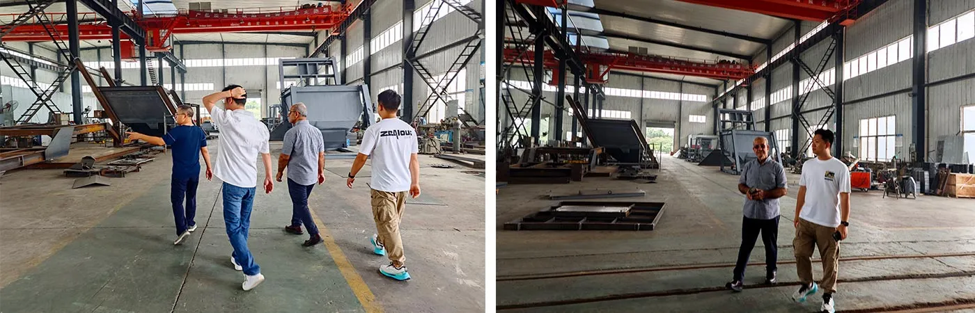 В сопровождении руководителей компании ZOOMLINE г-н Адель был тепло встречен и отправился на тщательную инспекционную поездку.От процесса резки материалов до производственного цеха,сварочного цеха,цеха пескоструйной обработки и удаления ржавчины,а затем до цеха электротехнического управления,сборочного цеха и демонстрационной площадки оборудования,клиент воочию увидел весь процесс производства продукции,от обработки деталей до полной сборки установки.Высокоточные процессы обработки,строгая система контроля качества и соответствующие отраслевым стандартам конфигурации основных компонентов,такие как полностью закрытый вибрационный грохот и система управления на базе ПЛК,произвели на г-на Аделя глубокое впечатление и еще больше укрепили его уверенность и надежду на будущее сотрудничество в различных областях.