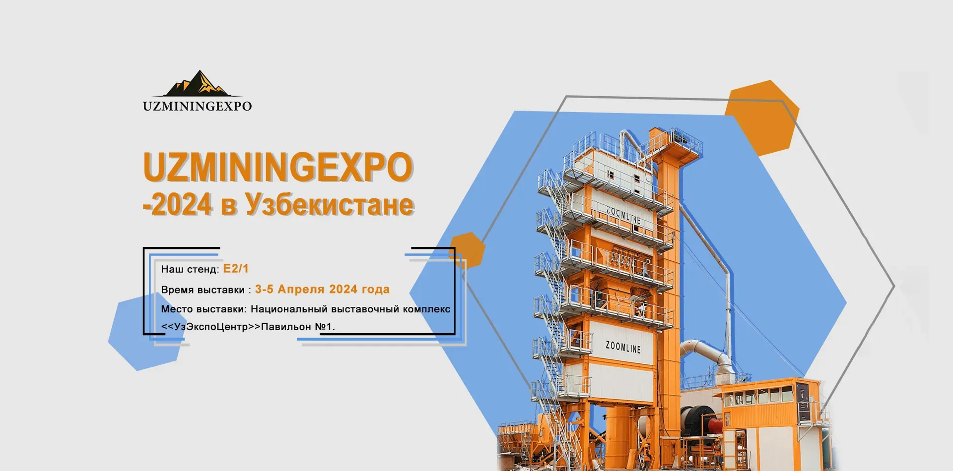 Henan Zoomline Machinery Co.,Ltd,искренне приглашаем вас участвовать выставку UZMININGEXPO-2024 в Ташкенте,Узбекстане.Мы можем подробно поговорим и вас покажем наш асфальтные заводы и другие коррелятивные установки.